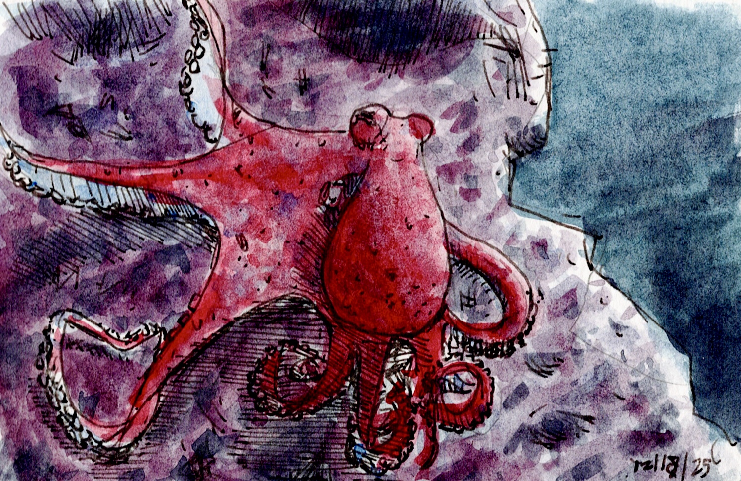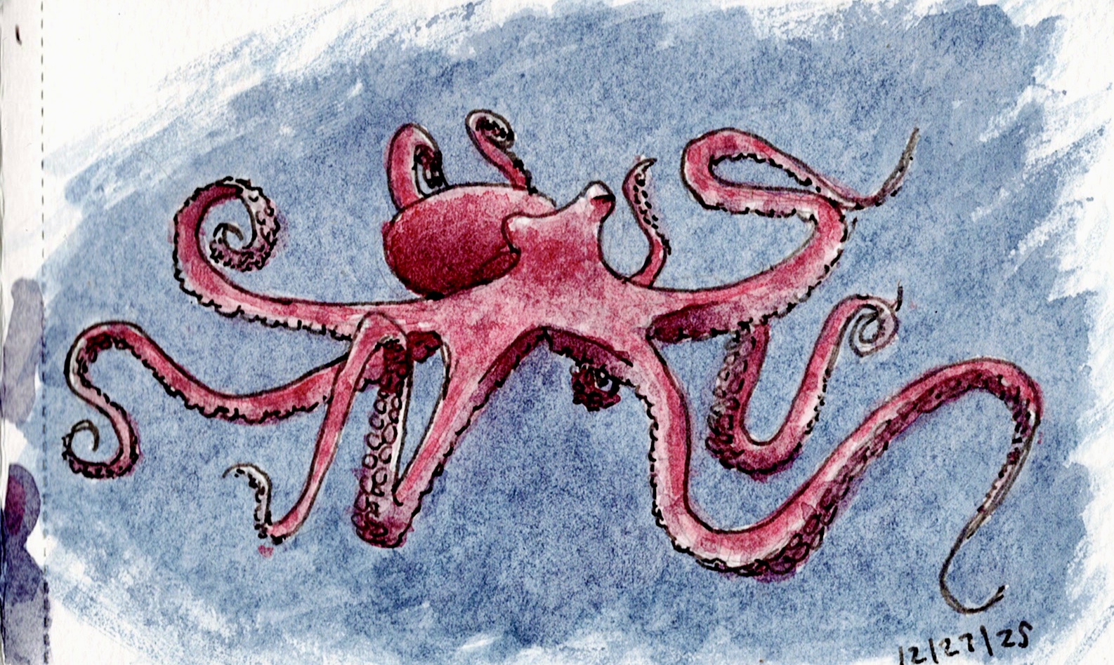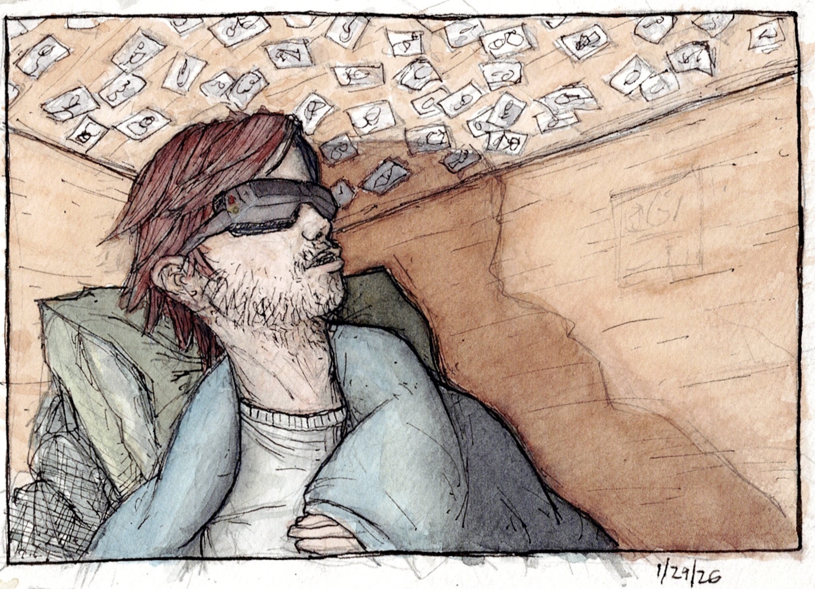 Recently I started keeping a sketch diary filled with paintings that I usually finish at the dinner table, in a 3 1/2 by 5 inch notebook. For me it’s a form of daily practice. The idea is to create a complete piece quickly and not tinker with the details too much. I realized I’d learn a lot faster if I were able to share my work with friends and get feedback.