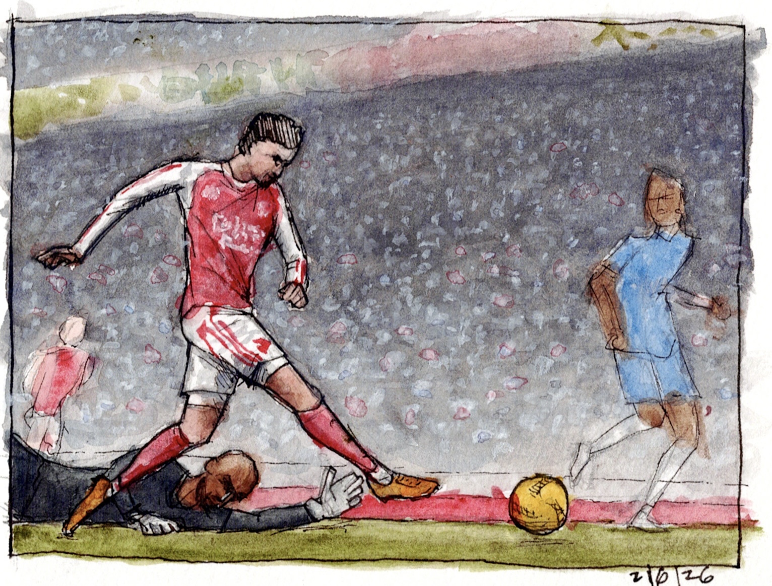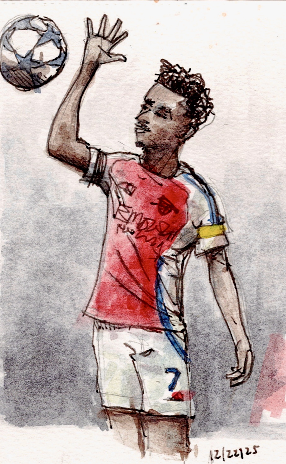 Bukayo Saka (I know, I didn’t capture the likeness) doing something with a football.