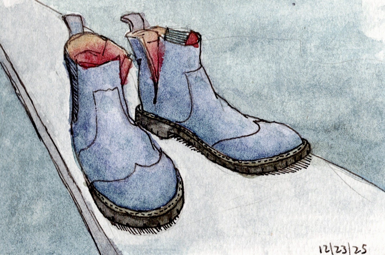 My daughter, Abby was doing her swimming lesson and left her boots on the bench by the side of the pool.